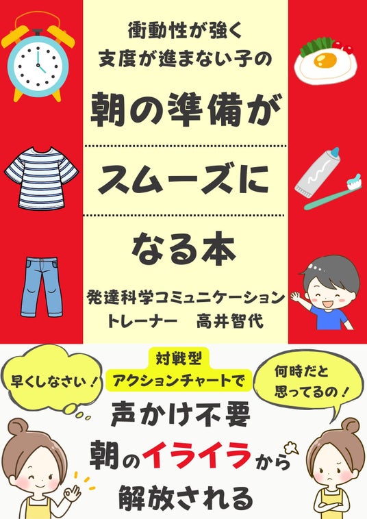 はじめまして 発達科学コミュニケーショントレーナーの高井智代です。衝動性の強い子に行動習慣をつける専門家として活動しています。この度は、衝動性が強く、朝の支度がなかなか進まない子の朝の準備を声かけなしで、スムーズにする方法をお伝えする電子書籍をリリースしました。
