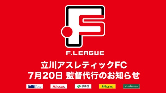 Fリーグ2024-2025 ディビジョン1 第8節「町田 vs 立川」において、立川は、サバス監督が体調不良のため、マルキーニョコーチが監督代行を務めることをお知らせいたします。