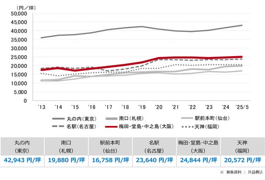 三幸エステート株式会社(本社:東京都中央区、取締役社長:武井重夫)は、2025年5月度の大阪市オフィス賃貸状況(空室率&現空面積:大規模、募集賃料&募集面積:大規模、規模別空室率、主要3区※1空室率:大規模)および全国6大都市(東京・札幌・仙台・名古屋・大阪・福岡)の大規模ビルのマーケットデータをまとめた「オフィスマーケット2025年6月号大阪」を公表します。