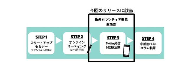 スタートアップセミナーにて地域を理解する視点などを学び、その後、大学生と地域活動団体がオンラインミーティングを行いながら、地域の魅力や課題について昨年度から運用している本事業のTwitterアカウントで発信します。その投稿を毎回メンバー総出でリツイートすることで情報を拡散し、延べ100万人への発信を目指します。また、参加いただいた学生にはプロジェクト参加認定書を発行します。