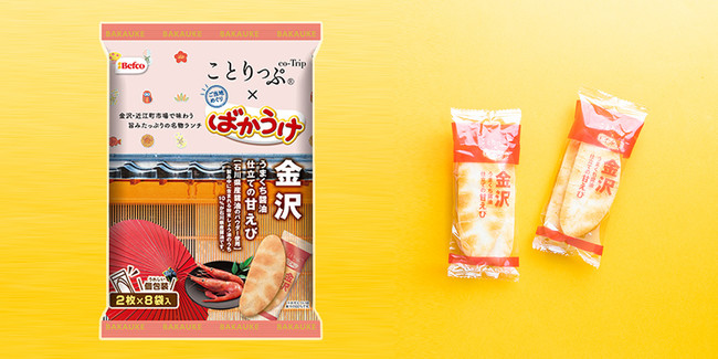 今回のコラボ商品は、「ご当地ばかうけ じゃがバター」、「ご当地ばかうけ うまくち醤油仕立ての甘えび」、「ご当地ばかうけ 辛子明太子」、「ご当地ばかうけ 紫いもと黒糖」の4品にての展開となります。