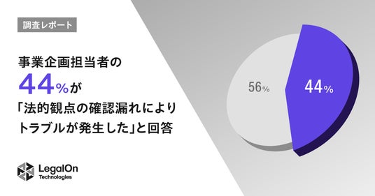 - 44%が法的観点で確認すべき事象について、確認を怠ったことで「トラブルが発生した」と回答。
