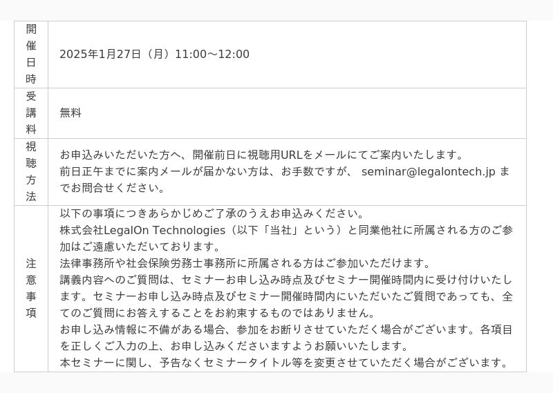 お申し込みはこちら:https://www.legalon-cloud.com/seminar/483
