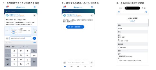 今回ベータテストを開始する「NEOBANK ai」エージェントは、生成AIが会話の流れからお客さまの目的をくみ取り、必要な情報の提示や手続き画面への誘導を自動で行う、“探さないUI”を実現するアシスタント機能です。
