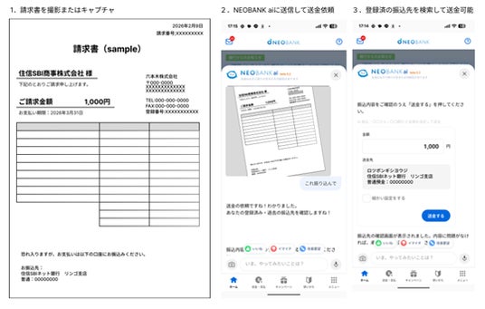 住信SBIネット銀行株式会社(本社:東京都港区、代表取締役社長(CEO):円山 法昭、以下「住信SBIネット銀行」)は、生成AIとの対話を通じて利用者の目的を理解し、それを起点に最適な画面をその場で自動生成する“ジェネレーティブUI”を採用した「NEOBANK ai」エージェントのベータテストを、2026年2月27日(金)より順次開始いたします。自然言語での依頼をもとに、振込などの取引や目的に応じたUIを生成(ジェネレーティブUI)し、実行できる AIエージェントを銀行アプリ上で顧客開放するのは邦銀としては初めて※1の試みとなります。