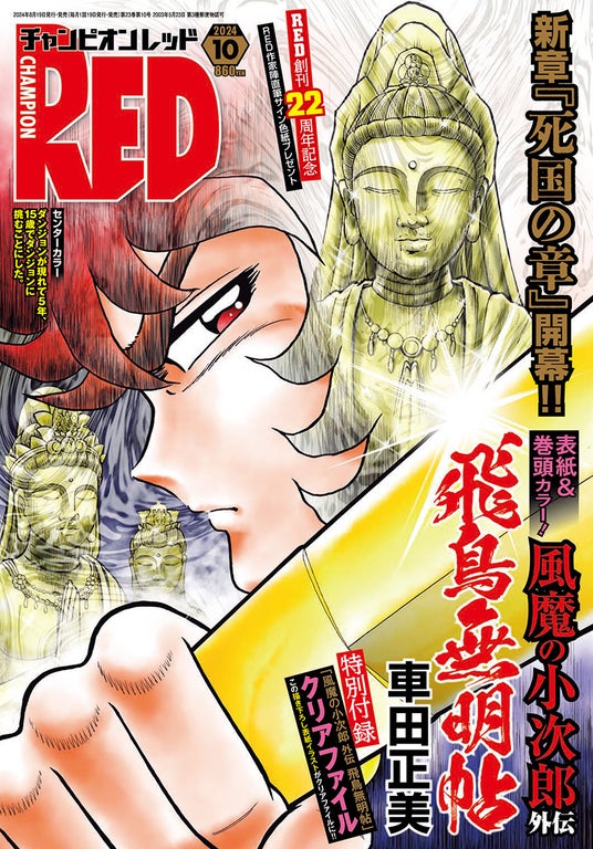 株式会社秋田書店(所在地:東京都千代田区、代表取締役社長:樋口茂)は、発行している『チャンピオンRED』(編集長:信田敬介)が8月19日(月)発売の10月号にて創刊22周年を迎え、その記念すべき号に車田正美が描く「風魔の小次郎」最新作「風魔の小次郎 外伝 飛鳥無明帖」が掲載されることをお知らせいたします。
