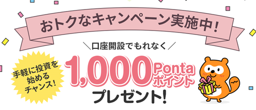 【口座開設でもれなくPontaポイント1,000Pontaポイント プレゼントキャンペーン!】