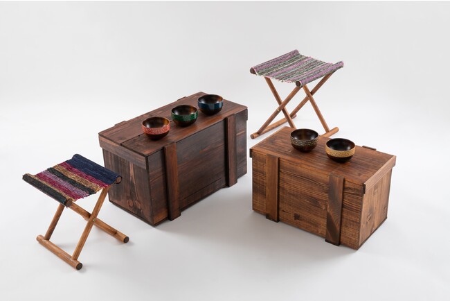 青森県の伝統工芸品である「津軽塗」をはじめ、複数のクラフトを活用したアウトドアグッズや、裂かれた布の風合いや独特の手ざわりを活かした「津軽裂織」のバッグ、日本一の収穫量を誇る青森りんごを使ったお酒や洋菓子など、青森県ならではの豊かな歴史と風土が感じられる魅力あふれる名産品を販売します。