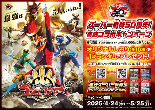 日本出版販売株式会社(代表取締役社長:富樫 建、略称:日販)は、東映株式会社(代表取締役社長:吉村 文雄)制作による「スーパー戦隊シリーズ」50周年を記念した書店コラボキャンペーンを、2025年4月24日(木)より全国568書店にて開催します。