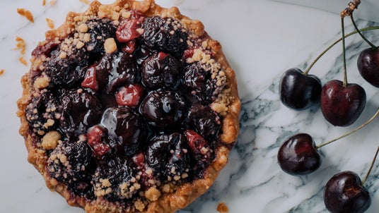 【広島限定・初登場】チェリーパイポップアップストア限定焼きたてフルーツベイクドパイ に「チェリーパイ」が新登場。サクッと焼いた練りパイの生地にダークチェリー、サワーチェリーのコンポートをのせ、クランブルを散らして焼いた、ジューシーで香ばしいベイクドフルーツパイです。