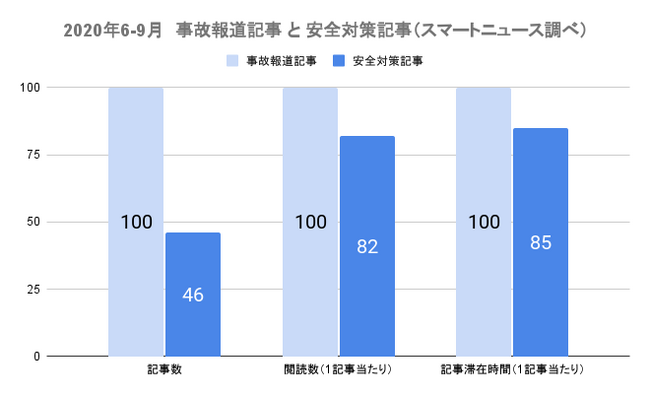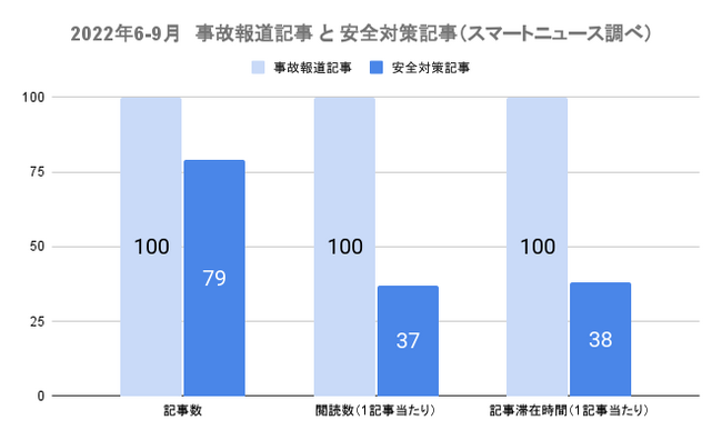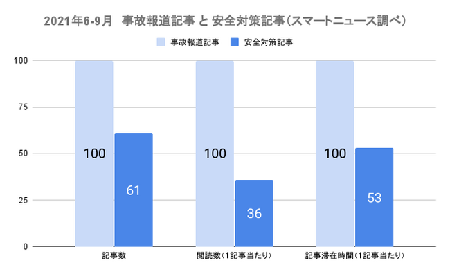 (*2)タイトルに事故報道、安全対策に関連する複数のキーワードを含む記事の記事数、閲読数(1記事あたり)、記事滞在時間(1記事あたり)について、事故報道記事の数値を100%として比較