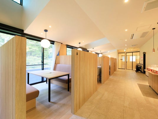 館内には愛犬も温泉を愉しむことができる貸切風呂をはじめ、ドッグランやフォトスタジオを完備。お食事ももちろん愛犬と同伴OKで、周りのワンちゃんが気にならないようレストランは半個室仕様となっています。