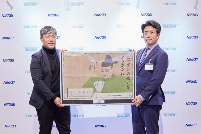 受賞対象の広告(写真左から 当社事業企画・戦略営業部門 マーケティング企画部 部長 水谷 博明、木村 慎)