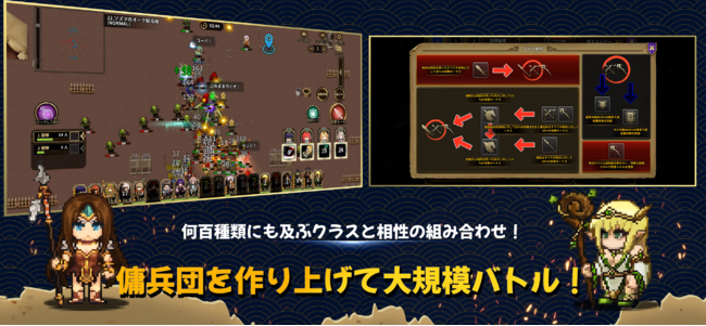 また、どこか懐かしいドット調のグラフィックやキャラクターイラストも特長で、数百種類もあるクラスから傭兵を集めたり、アイテムの収集をしたりなど、コレクション性も楽しめるゲームとなっております。