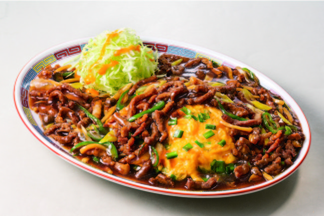 「肉だくルースーニラ玉天津飯」は、肉をたっぷりと味わうための天津飯。皿全体を覆い尽くすほどにルース―(細切り肉)を“てんこ盛り”した、全国の肉党に捧ぐ、食べ応え抜群の“キングオブ天津飯”です。とろとろのニラ玉と肉あんかけは、絶妙なコンビネーション。食欲を思う存分、解放していただける一品です。