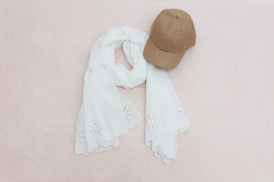 【Women’s】白のレーススカーフ5,990円、ストローキャップ2,990円 ※すべて税込み価格