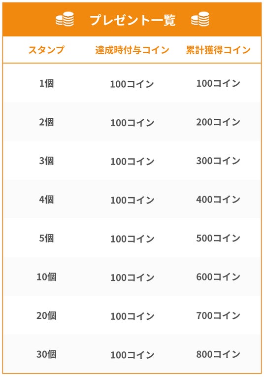 30個全てのスタンプを集めると、合計1,600円分のコイン(800コイン)を獲得することができます!