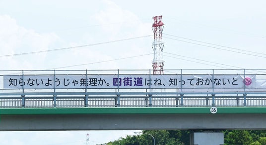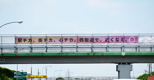 四街道市では、高速道路を利用する方に向けて本市の魅力を広く発信することを目的に、東関東自動車道を跨ぐ市内の陸橋にPR横断幕を掲出しています。