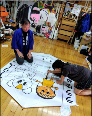 三条凧協会協力のもと、オリジナルの30枚張り(畳2枚半)の凧を作成しました。合戦当日は自作した凧をあげ、お父さんのチームの凧と空中戦に挑みます。