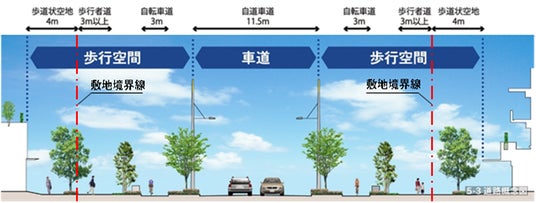 (3)スムーズな移動が可能な歩行空間と自転車専用レーンの設置