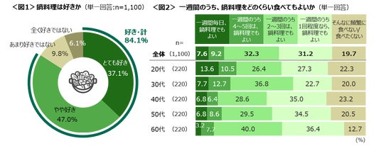 鍋料理は「とても好き」が37.1%、「やや好き」が47.0%で、合わせて84.1%が好きと回答。<図1>