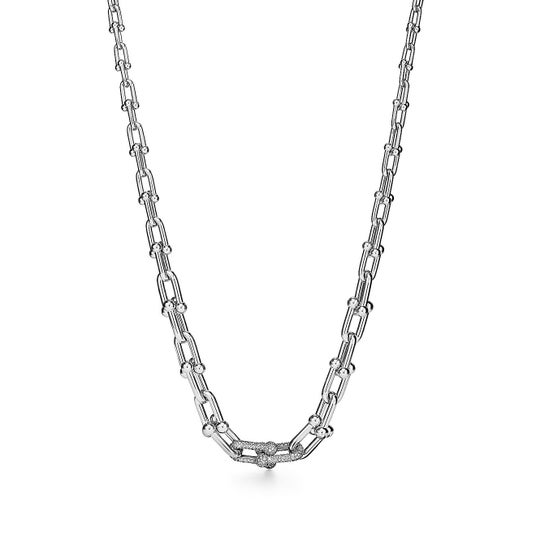 「ティファニー ハードウェア」 グラジュエイテッド リンク ネックレス(ホワイトゴールド、パヴェダイヤモンド)