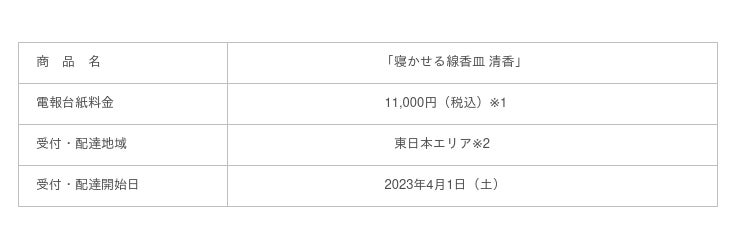 東日本電信電話株式会社(以下、NTT東日本)は、新たに弔慰用電報台紙「寝かせる線香皿 清香」を2023年4月1日(土)より東日本エリアで販売開始します。