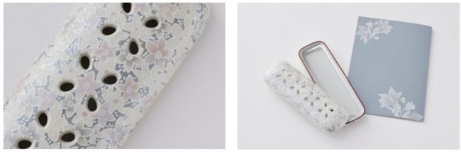 線香皿とオリジナル電文入れをセットでお届けします。線香皿は、落ち着いた色合いで、優美で気品ある雰囲気が漂います。オリジナル電文入れは、グレーを基調に、落ち着いた淡い色の小花の柄が散りばめられたNTTオリジナルのカラーです。(線香皿サイズ:3.6×19.8×6.5cm)