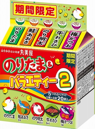 丸美屋食品工業株式会社(本社:東京都杉並区、社長:阿部豊太郎)では、定番商品の「のりたま」を中心とした5種類のふりかけを詰め合わせた「のりたま&バラエティー2」を2021年2月12日(金)~9月30日(木)までの期間限定で販売いたします。大人から子供まで楽しめる飽きのこないふりかけの詰め合わせで、ふりかけ市場を盛り上げます。