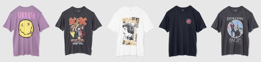 ニルヴァーナ、レッド・ホット・チリ・ペッパーズ、AC/DC、ジミ・ヘンドリックス、フリートウッド・マックとのTシャツがラインナップ