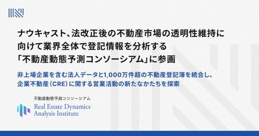 ナウキャストは、本コンソーシアムへの参画を通して、不動産市場の透明性維持と持続的な発展に貢献してまいります。