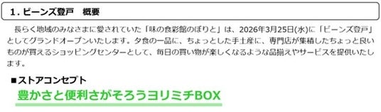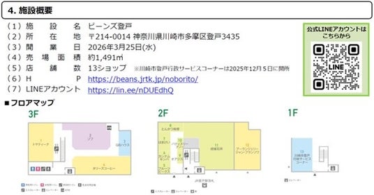 株式会社ジェイアール東日本都市開発は、2026年3月25日(水)10:00にJR登戸駅直結のショッピングセンター「ビーンズ登戸」をグランドオープンいたします。オープニングキャンペーンとして、開業記念のJRE POINT3倍デー、各ショップのイチオシ商品を詰め込んだビーンズ登戸オリジナルハッピーBOXの販売など、様々な企画を ご用意しております。地域のみなさまの「ちょっとした寄り道」にぜひビーンズ登戸をご利用ください。