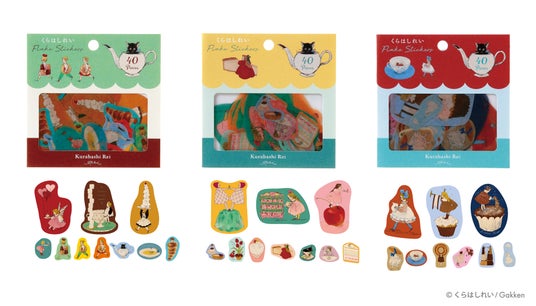 アートの背景がクリアなステッカーは文具シリーズ初登場。