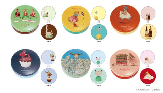 大人気の缶入りメモは新柄6種類が登場!中のメモはたっぷり40枚入り。