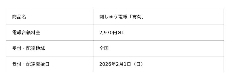 NTT西日本およびNTT東日本(以下、NTT東西)は、新たに弔慰用電報台紙、刺しゅう電報「宵菊(よいぎく)」(以下、本商品)を2026年2月1日(日)より全国で販売開始します。