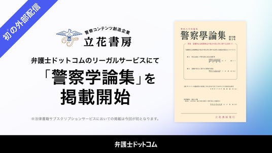 弁護士ドットコム株式会社(東京都港区、代表取締役社長 兼 CEO・弁護士:元榮 太一郎)は、運営するリーガル特化型AIエージェント「Legal Brain エージェント」および法律書籍サブスクリプションサービス「弁護士ドットコムLIBRARY」「BUSINESS LAWYERS LIBRARY」の3サービスにおいて、株式会社立花書房が刊行する『警察学論集』の掲載を開始したことをお知らせします。なお、直近3年分のバックナンバーを含む同誌の掲載は、法律書籍サブスクリプションサービスにおいて当社が初となります。