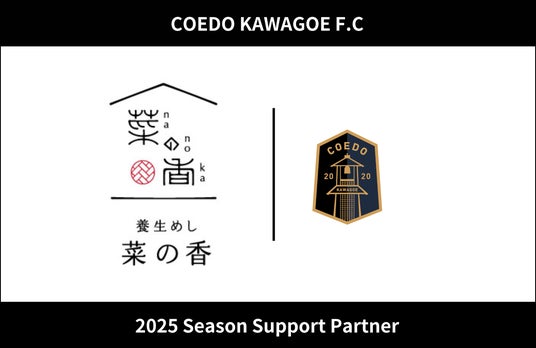 COEDO KAWAGOE F.Cを運営するCOEDO KAWAGOE F.C株式会社(埼玉県川越市、代表取締役 有田和生)は、「旬の食材を使った あなたの身体と心に寄り添うごはん」をコンセプトに、薬膳の考え方をベースに 体調や体質にあったおかずを選べる蒸籠蒸し定食などを提供する養生めし 菜の香(埼玉県川越市、店長 似内七菜)と2025シーズンのサポートパートナー契約を締結したことを発表いたします。