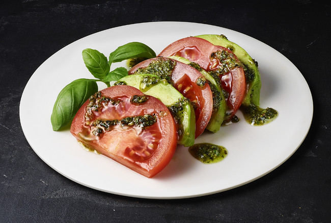 オリーブオイルに混ぜ、カットしたアボカド、トマトにかけるだけで完成です。