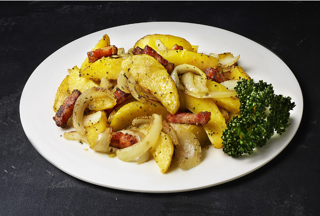じゃがいも、玉ねぎ、ベーコンとフライパンで一緒に炒めるだけで完成です。