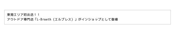 ~東海エリア初出店のアウトドア専門店「L-Breath」が登場。 地域のスポーツファンが集う店舗へと生まれ変わります!~