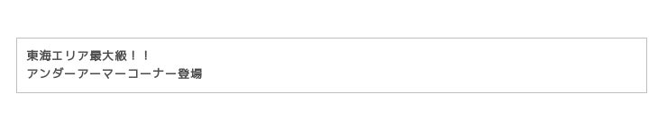 約100坪のアンダーアーマーコーナーは、豊富な品ぞろえとスポーツの躍動感あふれる売場で、アンダーアーマーブランドを全身で体感して頂けます。よりパフォーマンスを高めるトレーニングウェアやコンプレッションウェアを豊富にラインナップしております。他のスポーツ店では販売していないアイウェアなどの限定商品もお買い求めいただけます。