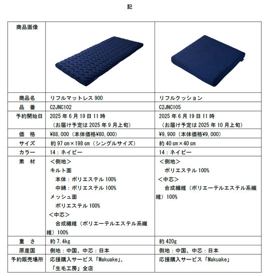 「リフルクッション」を同時発売