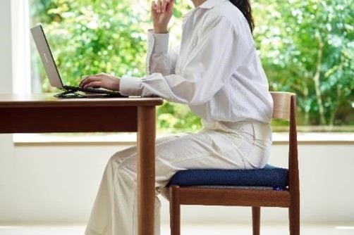 高反発網状素材「リフル」を使用した3層構造を中芯に採用しています。約5cmの厚みがあるのでクッション性が高く、底付きを感じにくいクッションです。体圧分散性にも優れるので、長時間の着座でもお尻の負荷を軽減し、快適に過ごせます。