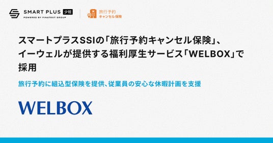 次世代金融インフラの提供を通して組込型金融を実現するFinatextグループの株式会社Finatextホールディングス(本社:東京都千代田区、代表取締役社長CEO:林 良太)とあいおいニッセイ同和損害保険株式会社(本社:東京都渋谷区、代表取締役社長:新納 啓介)が出資するスマートプラス少額短期保険株式会社(本社:東京都千代田区、代表取締役:小山 宏人、以下「スマートプラスSSI」)は、サービス組込型の「旅行予約キャンセル保険」が、株式会社イーウェル(本社:東京都千代田区、代表取締役社長:稲葉 章司、以下「イーウェル」)が提供する福利厚生サービス「WELBOX(ウェルボックス)」にて採用されたことをお知らせいたします。