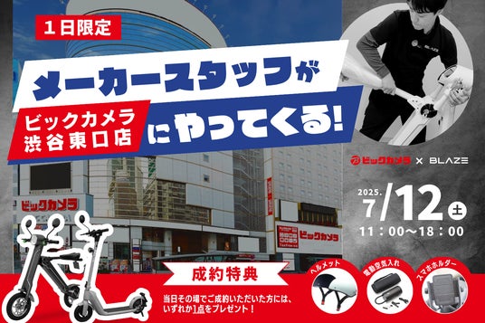 株式会社ブレイズ(愛知県名古屋市、代表取締役:市川秀幸、以下ブレイズ)は、2025年7月12日(土)にビックカメラ渋谷東口店にて、メーカースタッフによる1日限定の入店販売イベントを実施いたします。