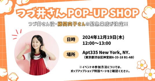 キャラクターオリジナルグッズブランド「CHARAZZ(キャラズ)」(運営:株式会社HIKE)が現在開催している「つづ井さん POP-UP SHOP」に、ドラマ『つづ井さん』にて主人公・つづ井さん役を演じる藤間爽子さんの緊急来店が決定しました。藤間さんの来店日時は2024年12月19日(木)12時から13時までとなっております。また明日12月18日(水)11時より、同店舗でグッズをご購入いただいた先着20名様に、藤間さんと写真撮影ができるイベント参加券を配布いたします。