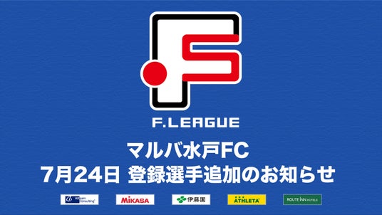 7月24日、Fリーグ2024-2025 ディビジョン2において、マルバ水戸FCの登録選手が追加されましたのでお知らせいたします。