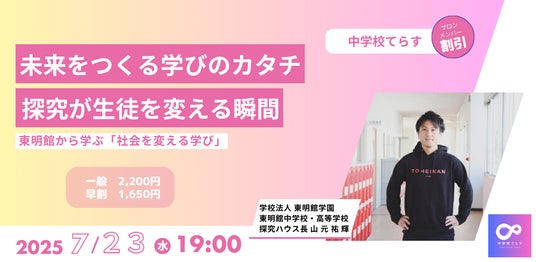 本イベントでは、山元先生が東明館で探究コースを立ち上げた思いや、PBLやTBLなどの教育の仕組み、そして生徒たちの驚くべき成長をご紹介しながら、「やりたいことを形にする」学びの実践を共有します。