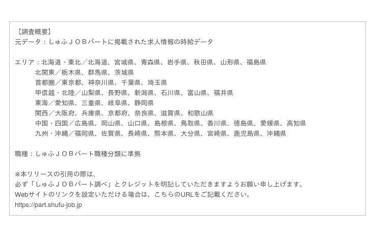 ビースタイル グループで主婦に特化した求人サイト『しゅふJOBパート』を運営する株式会社ビースタイル メディア(本社:東京都新宿区、代表取締役社長:小牟田斉美)は、掲載された求人情報の時給データから算出した『平均時給』の2020年11月分を集計しました。