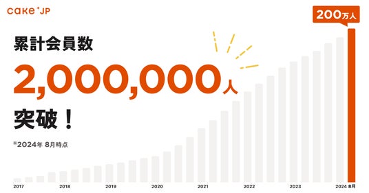 ケーキ・スイーツ専門通販サイト「Cake.jp(ケーキジェーピー)」を運営する株式会社Cake.jp(本社:東京都新宿区、代表取締役:高橋 優貴)は、2024年8月28日(水)に、会員数200万人を突破したことをお知らせいたします。
